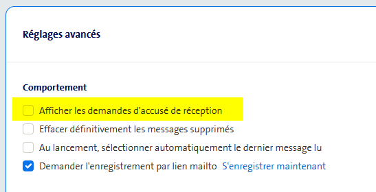Il faut cocher la case “Afficher les demandes d’accusé de réception”.