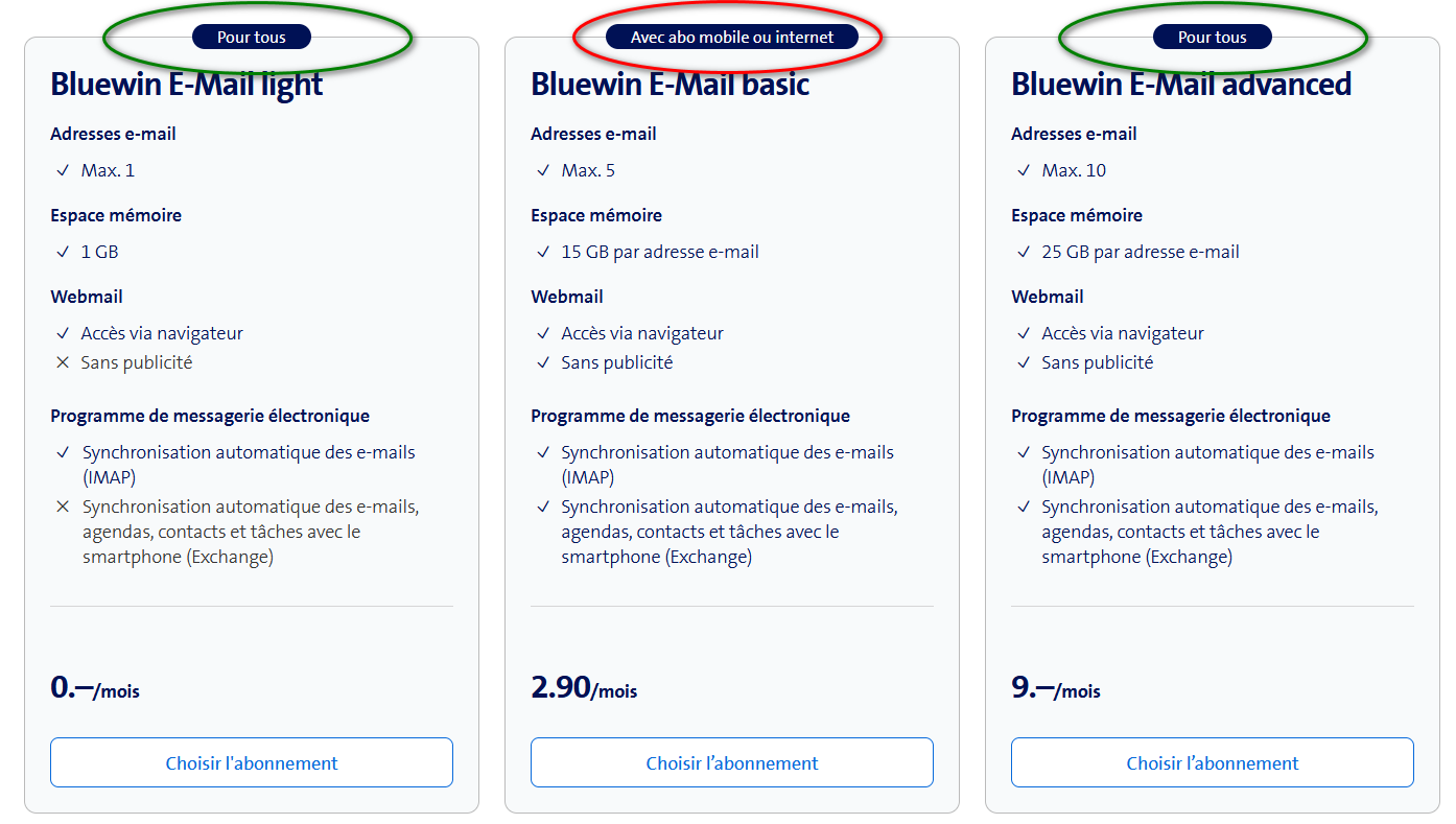 - je peux conserver ces adresses mail à condition de payer Fr. 2.90 /mois soit 34.80 par année