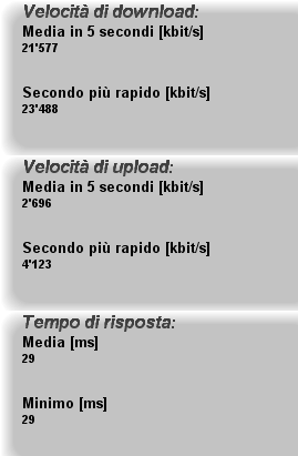 Qui (http://hsi.bluewin.ch/speedtest/) puoi testare la velocità , e in seguito puoi confrontare i dati che ottieni con i miei: