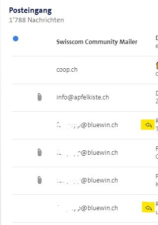POGO 1104 @Jompolding41 schrieb: Guten Tag, wie sehe ich ob wenn das Mail beantwortet oder weitergeleitet wurde? Wenn es in den "Gesendeten" Mails drin ist oder im Posteingang sieht man es über das gelb markeirte Icon: