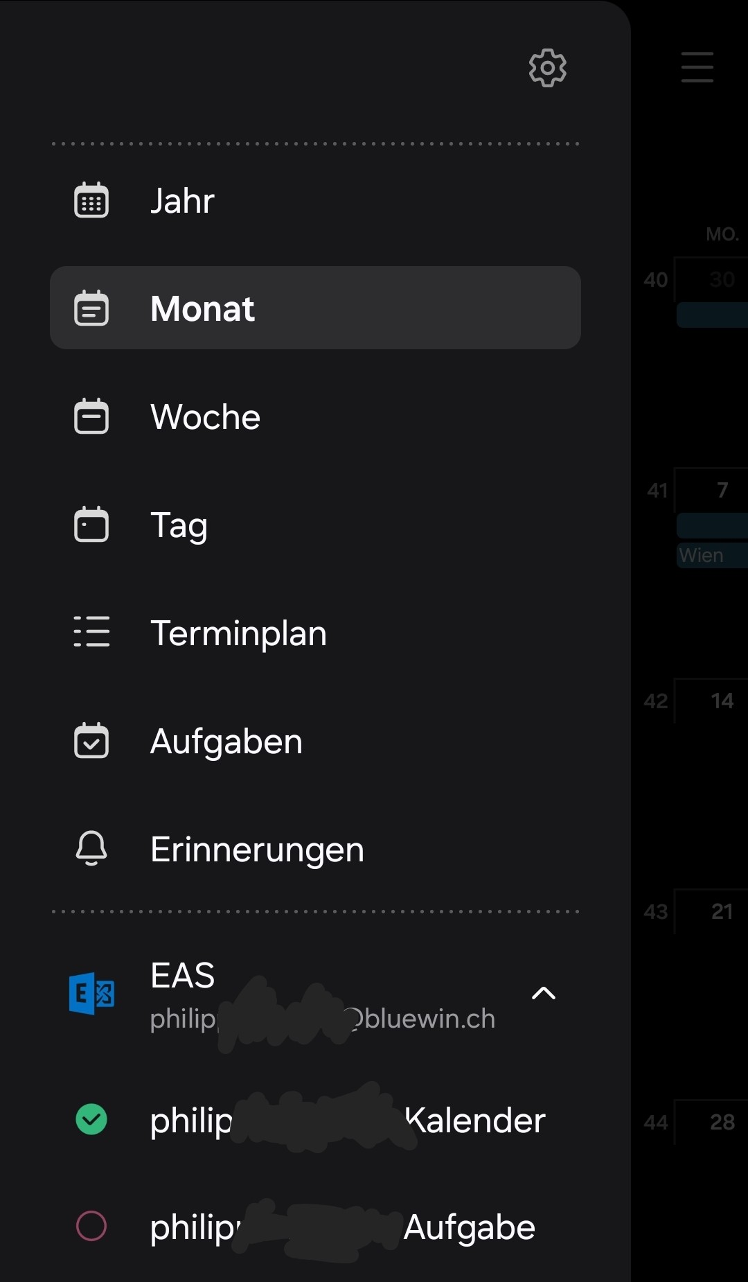 Kalender Bluewin E-Mail basic