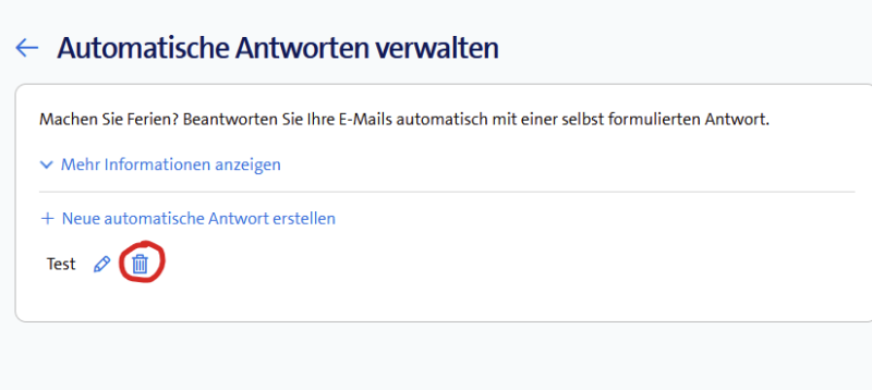 Nun klickst Du auf Einstellungen. Auf der folgenden Seite hat es einen Kasten (Automatische Antworten verwalten):