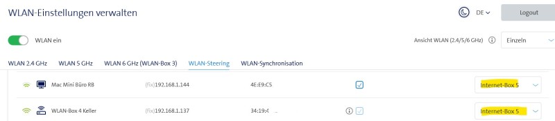 Die Box wurde im November 24 ohne Probleme installiert (Ablösung des Vorgängers). Seither verliere ich regelmässig die Verbindung zu den drei WLAN-Boxen (aktuellste Versionen)
