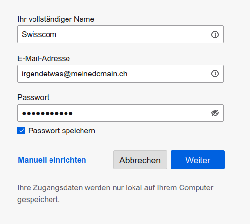 Und jetzt kommt noch etwas ganz anderes. Man kann das System auch austricksen. Ich kann zum Beispiel beim Namen einfach Swisscom eingeben.