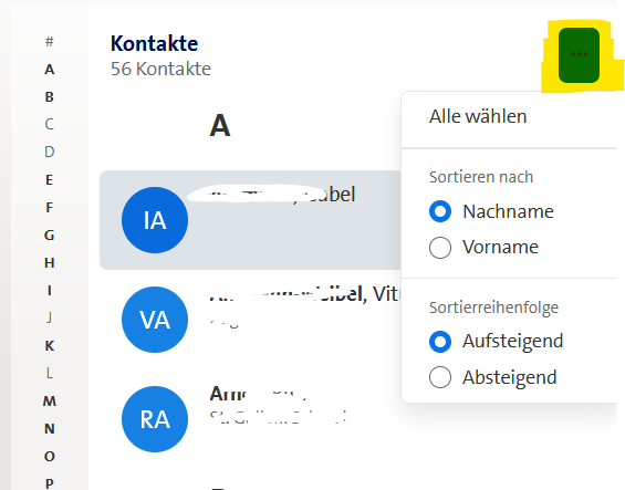 Es wird grundsätzlich nach dem 1 Buchstaben beim von sortiert. Das kann der Vorname sein, das kann der Nachname sein, das kann der Firmenname sein. Je nachdem wie der Absender das in seinem Mail eingestellt hat. Der Grossteil der Menschen stellt sich ja mit Vornamen, Nachnamen vor. Es ist eher selten der Fall, dass man sich mit Nachname, Vorname vorstellt. Und da im Mail selbst Vorname und Name nicht getrennt wird, ist eine spezifische Sortierung nicht möglich.