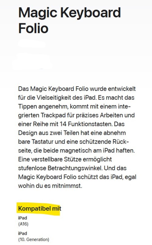 WalterB Es gibt viele iPad und wie sollen wir wissen welches iPad den vorhanden ist ? Spezifikation Magic Keyboard