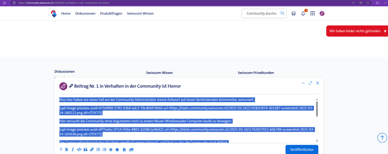 Du darfst Dich aber bestimmt gerne mit einer Privaten Nachricht an Mirko wenden, wenn Du mit dem Verhalten anderer User nicht einverstanden bist. Mirko ist Swisscom Mitarbeiter und Moderator der Community. Verwende dazu folgenden Link: