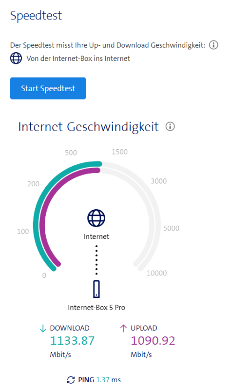 Hallo Zusammen, seit einer Weile funktioniert der Speedtest via Internetbox nicht mehr. Wenn man sich in den Router einloggte, konnte man vom Router aus einen Speedtest ausführen. Der funktioniert nicht mehr.