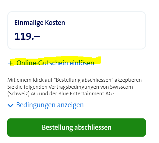 GuidoL Joupunkoug88 Im Swisscom Shop findest du kurz vor dem Abschluss der Bestellung einen Menüpunkt Online Gutschein einlösen