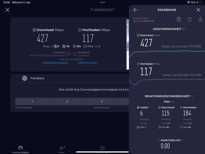 Vermutlich ergeben unterschiedliche Folgemessungen auch recht unterschiedliche Resultate und ob dem in der Internetbox eingebauten WLAN-Test messtechnisch tatsächlich zu trauen ist, wurde auch noch nicht wirklich verifiziert.