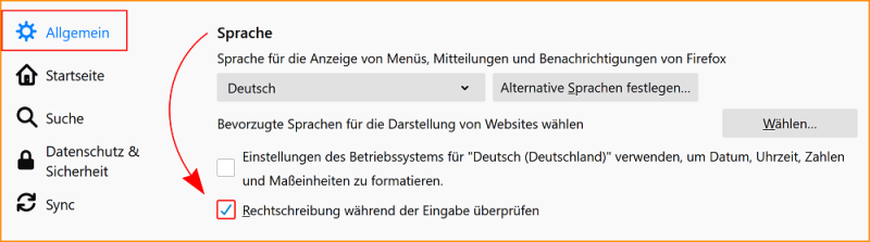 Schliesslich den Hacken reinklicken bei "Check your spelling as you type"