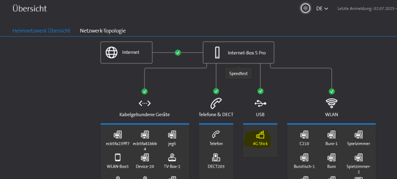 Der Screenshot von meiner Netzwerkübersicht unterscheidet sich schon, du hast andere Geräte am WLAN und am Ethernet , als ich, sonst ist alles gleich.