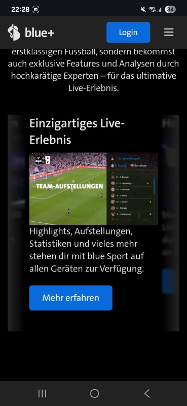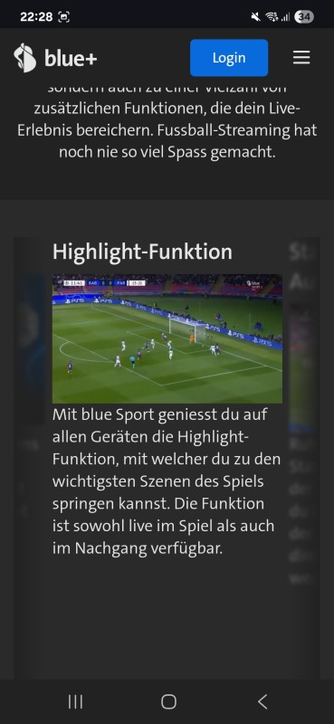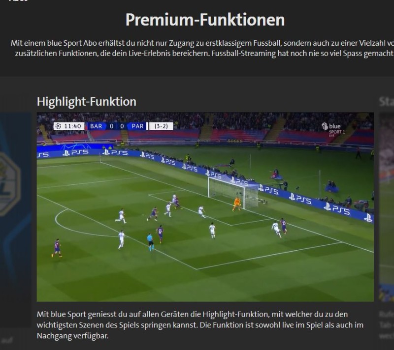 Weiter Wirbt Blue explizit mit der Replay funktion ohne Hinweis auf die Notwendigkeit eines zusätzlichen Abos.