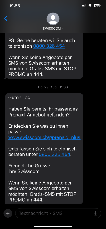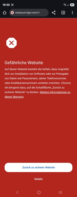 Dieser Link stammt mit Sicherheit NICHT aus einem offiziellen SMS von Swisscom!
