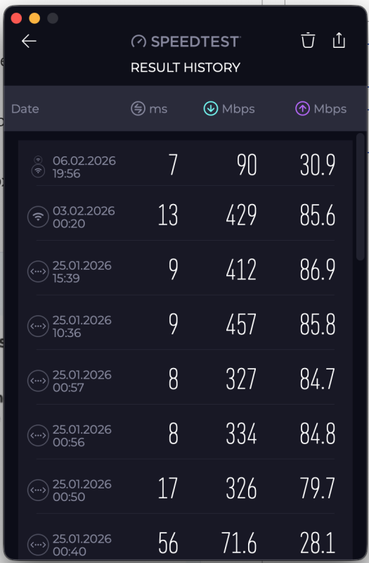I am always at 40 MB/s (or 320Mbps or more) when I use the booster. But for a couple of days now, it is not functioning properly.