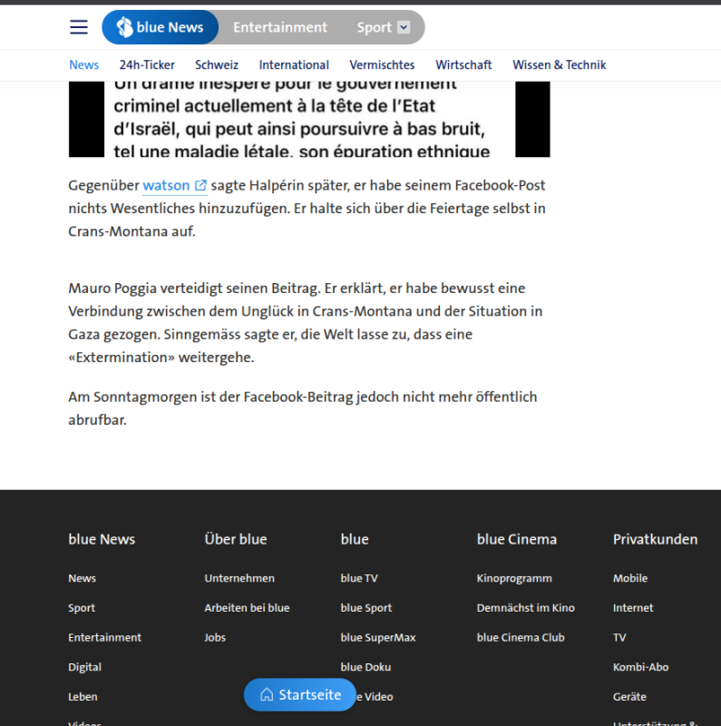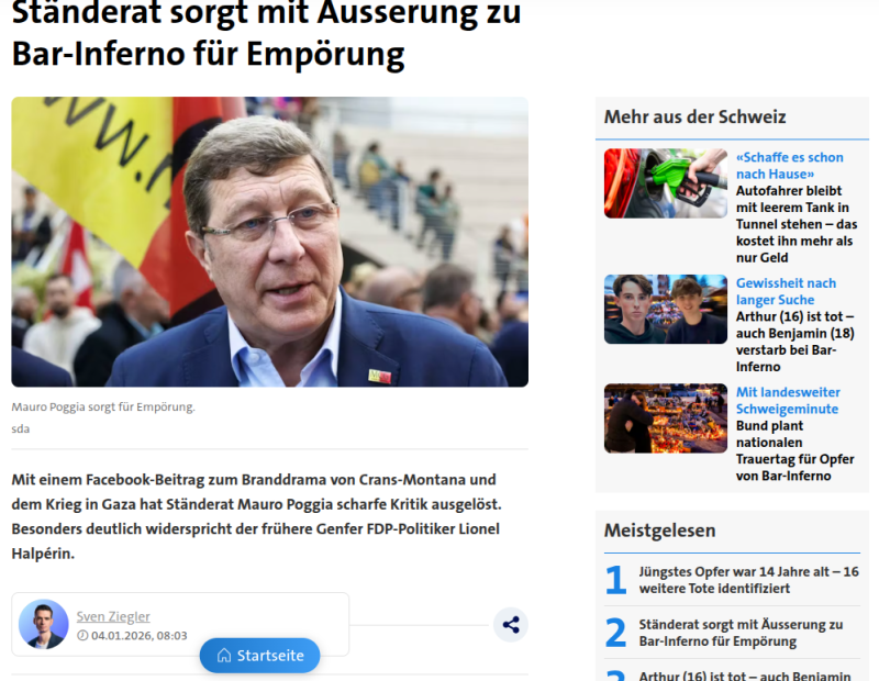 Ich habe da nur rechts vom Artikel Mehr aus der Schweiz (alles Deutsch) und Meistgelesen (alles Deutsch)