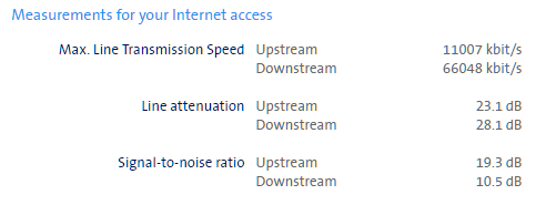 Der Verfügbarkeitscheck gibt übrigens 60/10 aus, aber wohl erst nachdem meine real höher erzielten Leitungsdaten ausgewertet wurden. Zuvor hatte ich Messdaten (Max Line Transmission Speed) die ich nicht hätte haben dürfen 😉