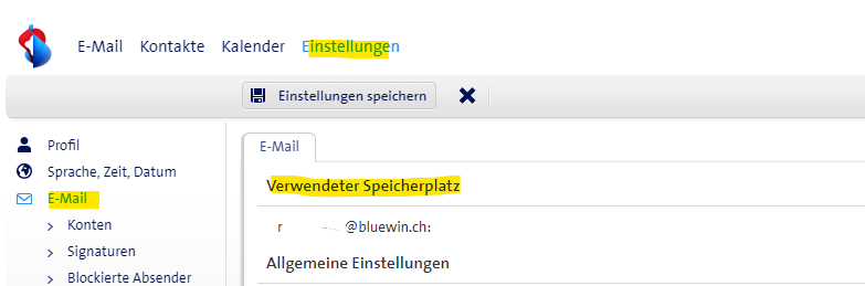 oder im Webmail unter “Einstellungen” -> “E-mail” -> verwendeter Speicherplatz werden auch alle vorhanden Adressen angezeigt.
