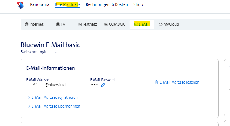 Minotaurus82 In MySwisscom unter “Ihre Produkte” -> “E-mail” -> 2E-mail Information", da sind alle E-mail Adressen die man hat aufgelistet (Bluewin Adressen selbstverständlich)