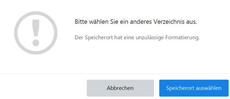 Der gleiche Test mit einem NTFS formatierten Speicher funktioniert problemlos und ohne Fehlermeldung.