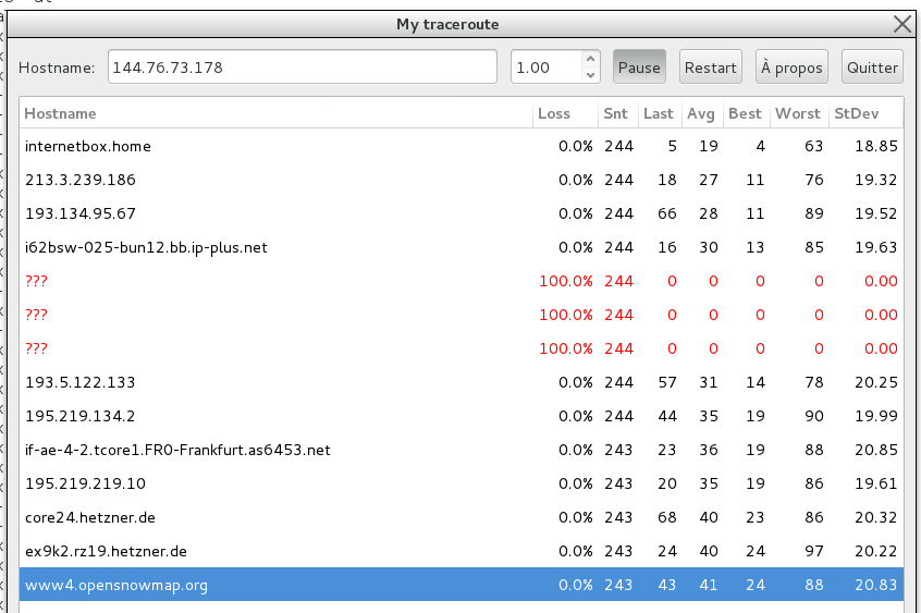 Aujourd’hui, si je fais le traceroute, effectivement il y a des pertes sur 3 noeuds,,, mais le site web que vous pointez s’affice correctement, il me semble.