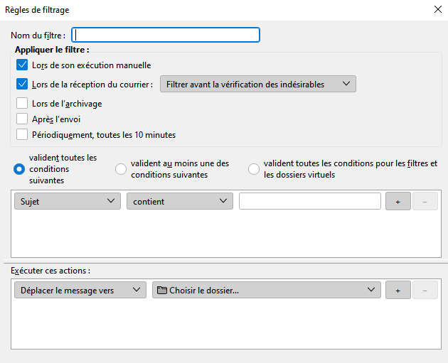 Tu peux aussi faire cela automatiquement en utilisant “Outils”, “Filtres de messages”